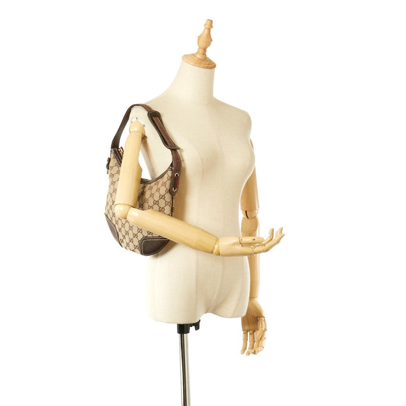 グッチ GGキャンバス プリンシー 162895 ベージュ ブラウン キャンバス レザー ショルダーバッグ レディース GUCCI 【中古】