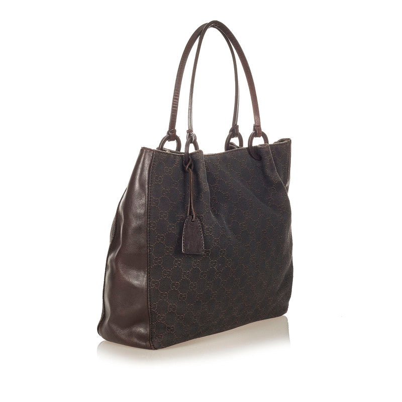グッチ 101920 ダークブラウン キャンバス レザー ハンドバッグ レディース GUCCI 【中古】