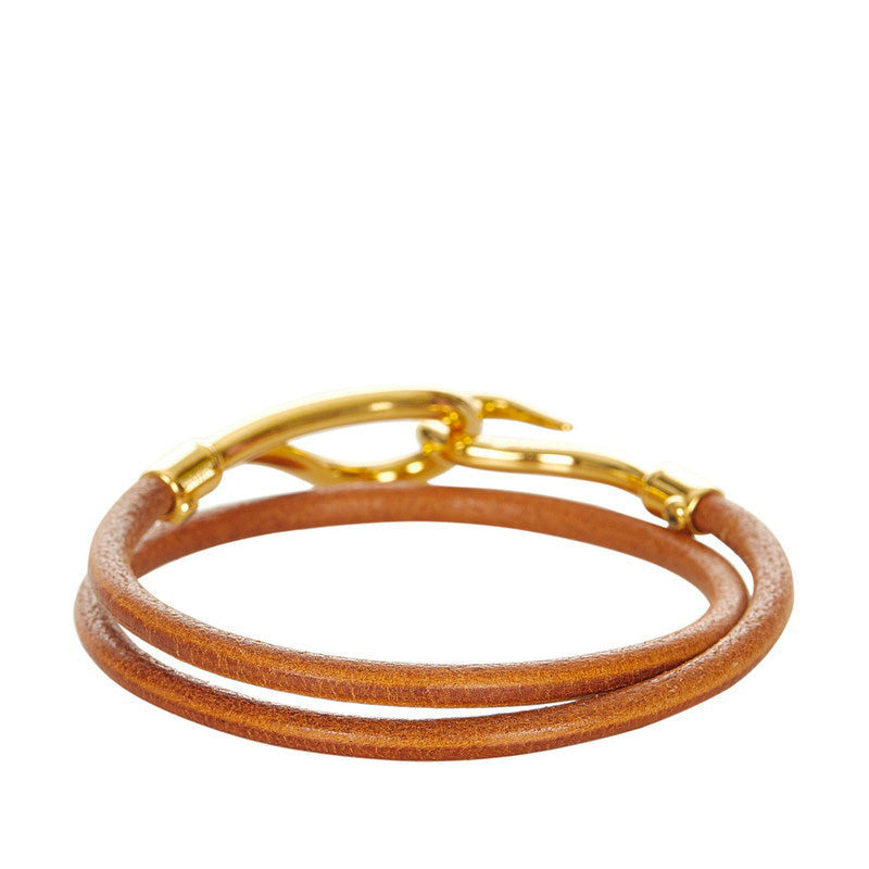 エルメス ブラウン ゴールド レザー メッキ ブレスレット レディース HERMES 【中古】