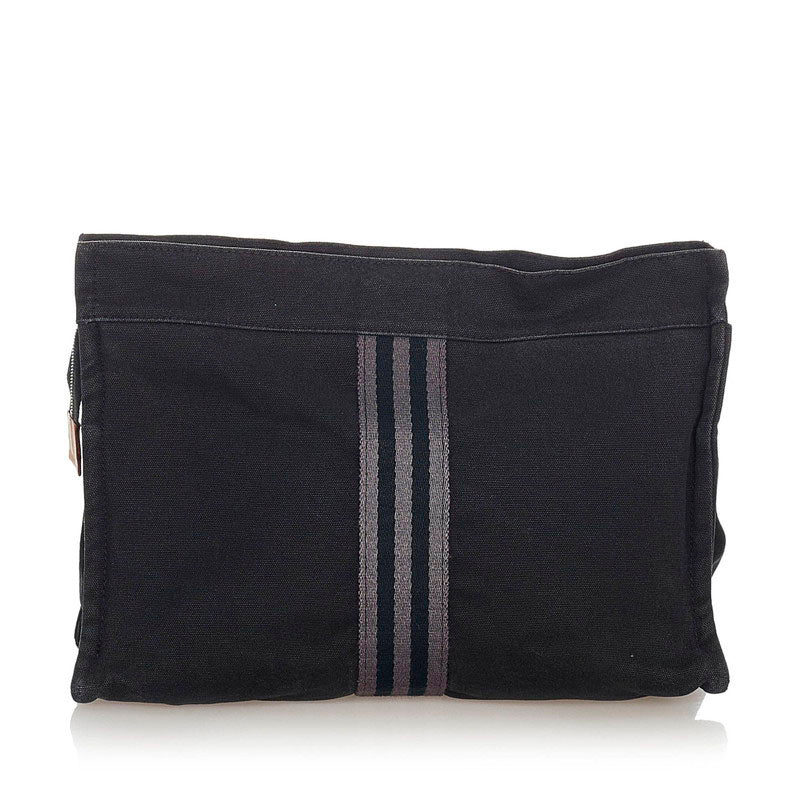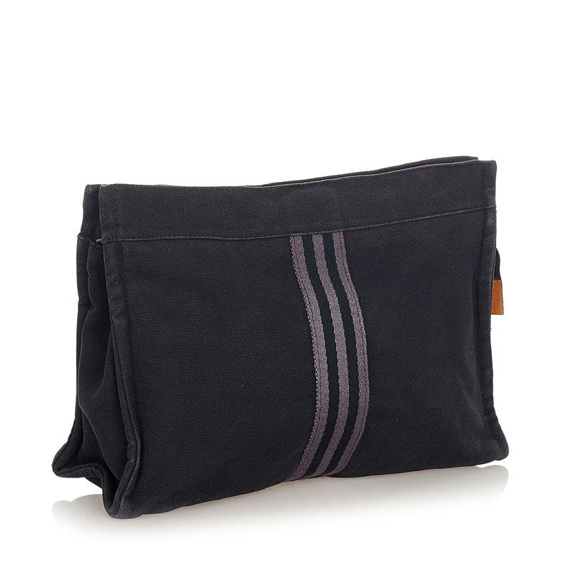 エルメス フールトゥ ブラック グレー コットン キャンバス クラッチバッグ メンズ HERMES 【中古】