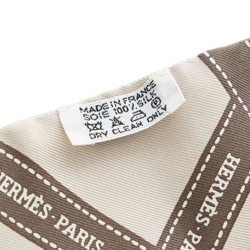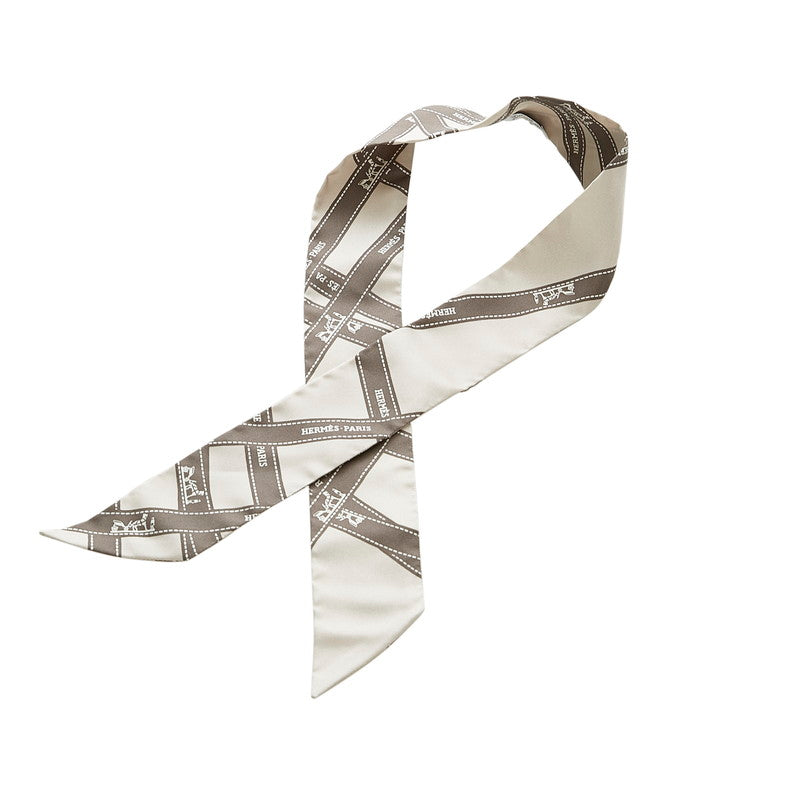 エルメス ツイリー ロゴ リボン柄 グレー シルク スカーフ レディース HERMES 【中古】