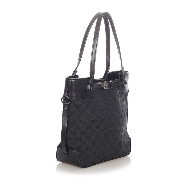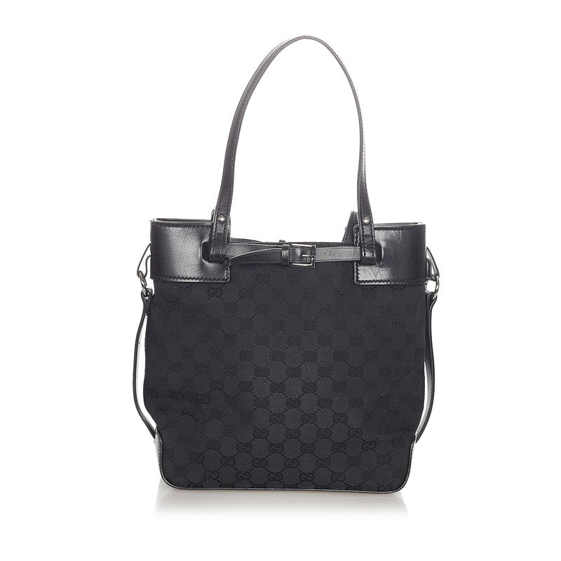 グッチ GGキャンバス ブラック キャンバス レザー トートバッグ レディース GUCCI 【中古】