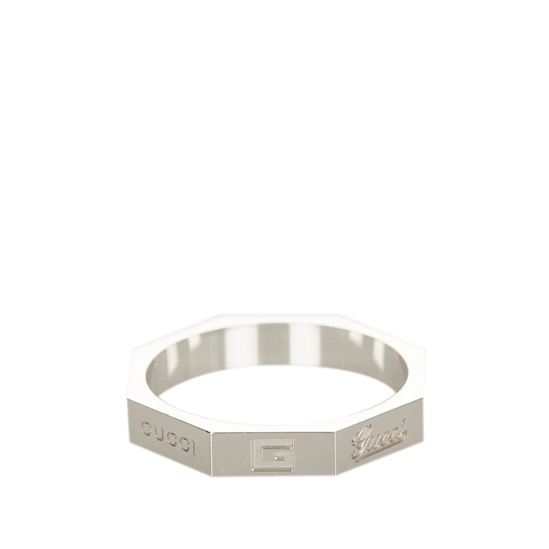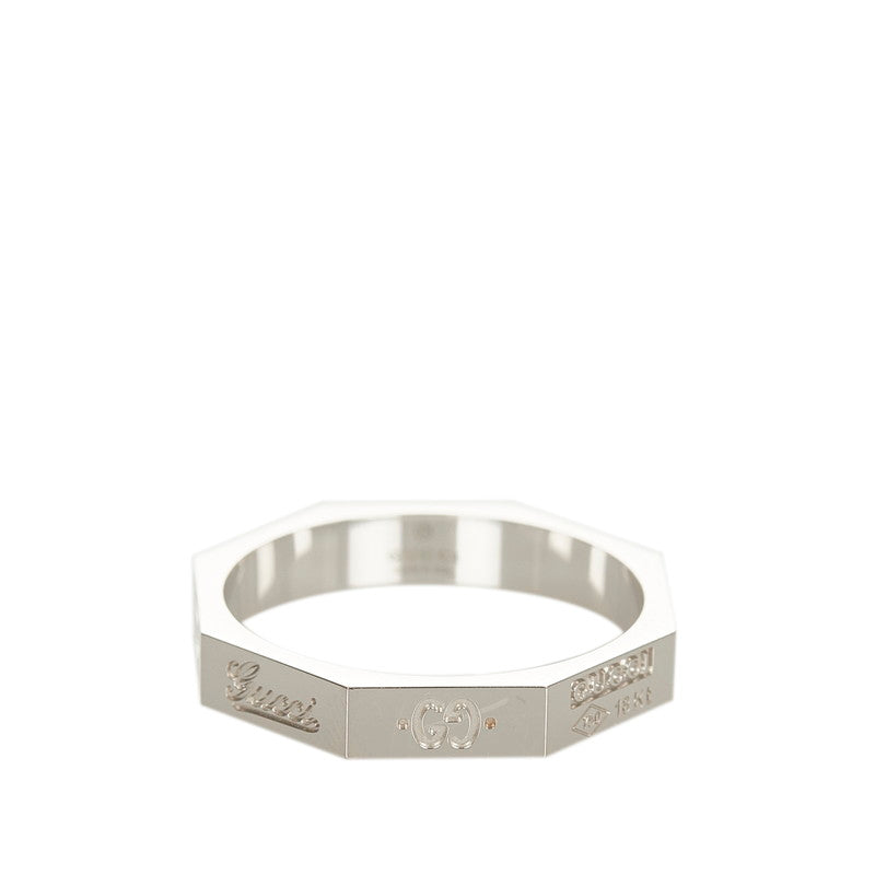 グッチ K18WG ホワイトゴールド オクタゴナル リング 指輪 メンズ GUCCI 17号 【中古】