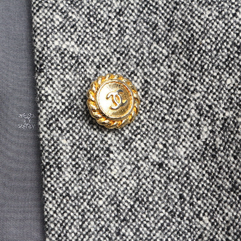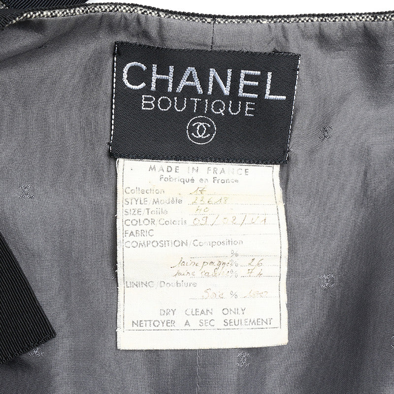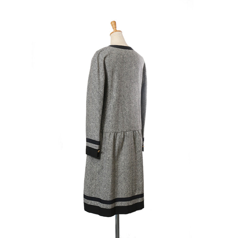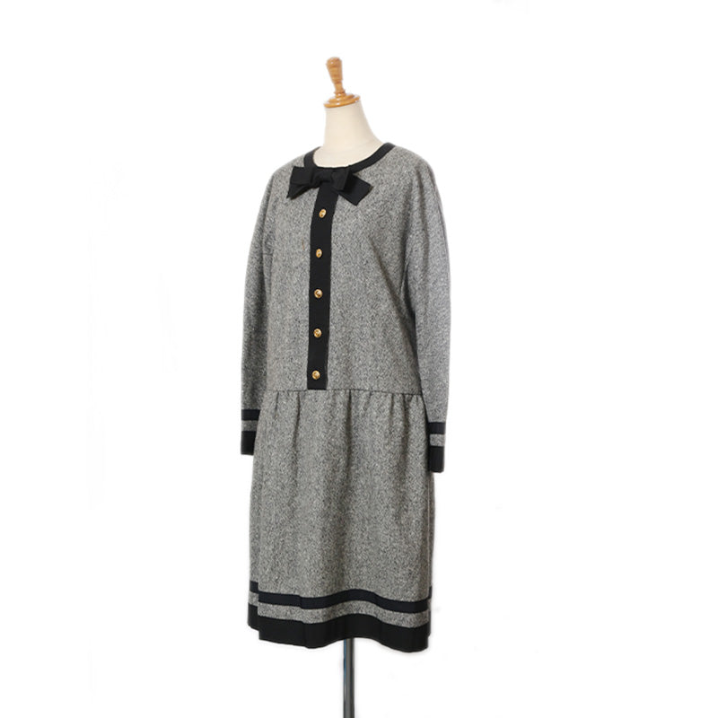 シャネル ココマークボタン リボン グレー ブラック ウール ワンピース レディース CHANEL 【中古】
