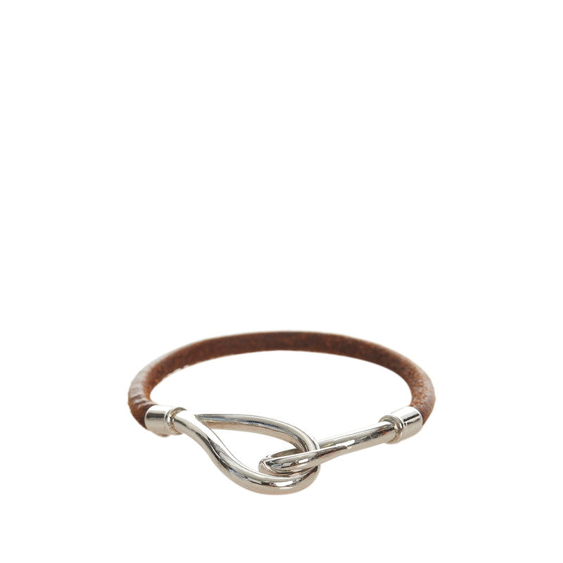 エルメス ブラウン シルバー レザー メタル ジャンボブレス ブレスレット レディース HERMES 【中古】