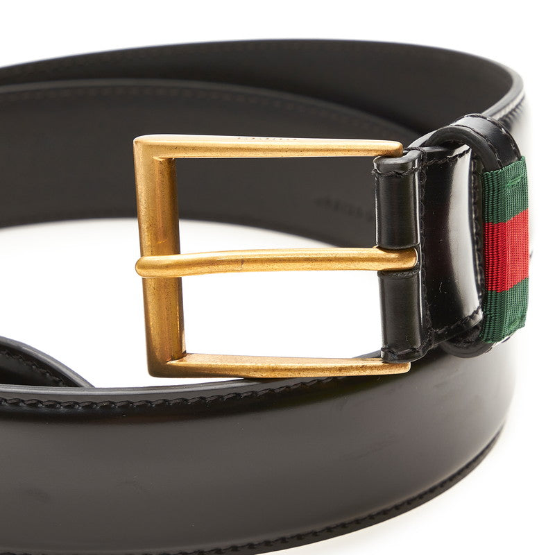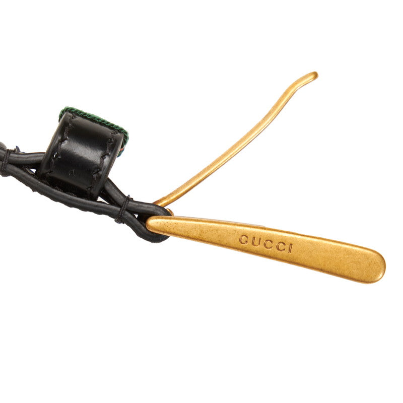 グッチ 495125 ブラック グリーン レッド レザー キャンバス ベルト メンズ GUCCI 【中古】