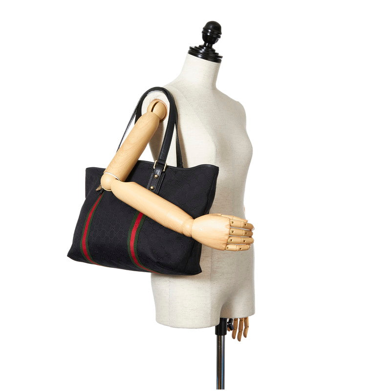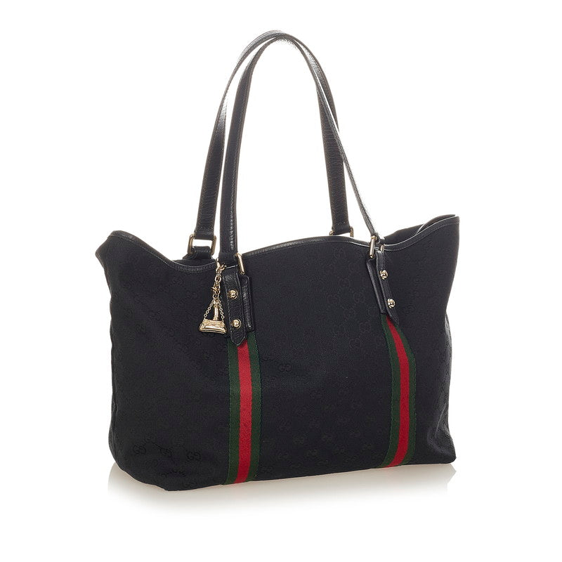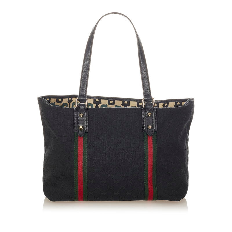 グッチ GGキャンバス シェリーライン 139260 ブラック キャンバス レザー トートバッグ レディース GUCCI 【中古】