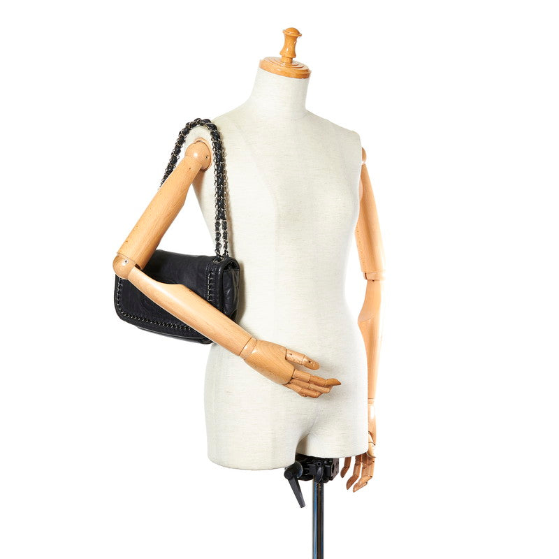 シャネル ココマーク チェーン ショルダーバッグ ブラック ラムスキン メタル レディース CHANEL 【中古】
