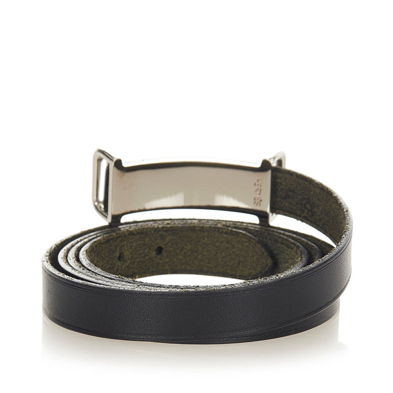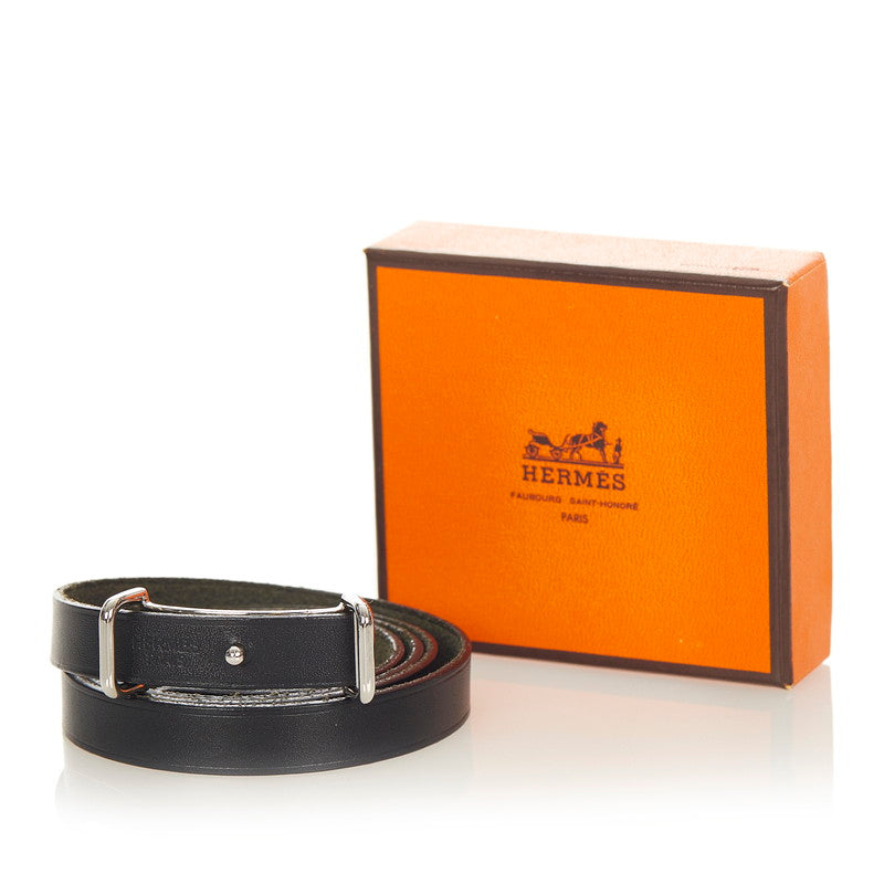 エルメス ブラック シルバー レザー メタル アピ2 バングル レディース HERMES 【中古】