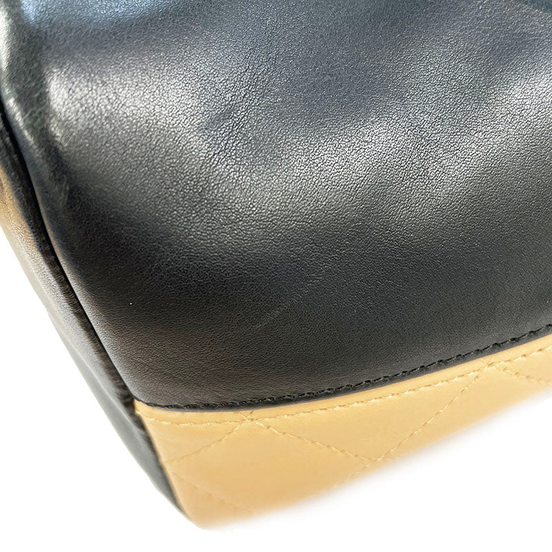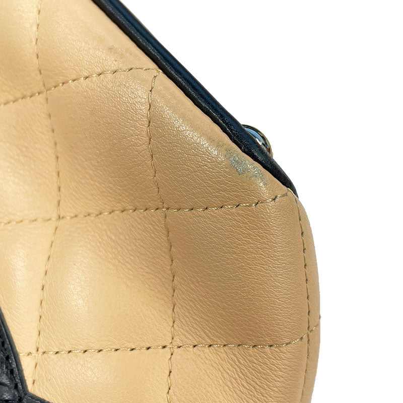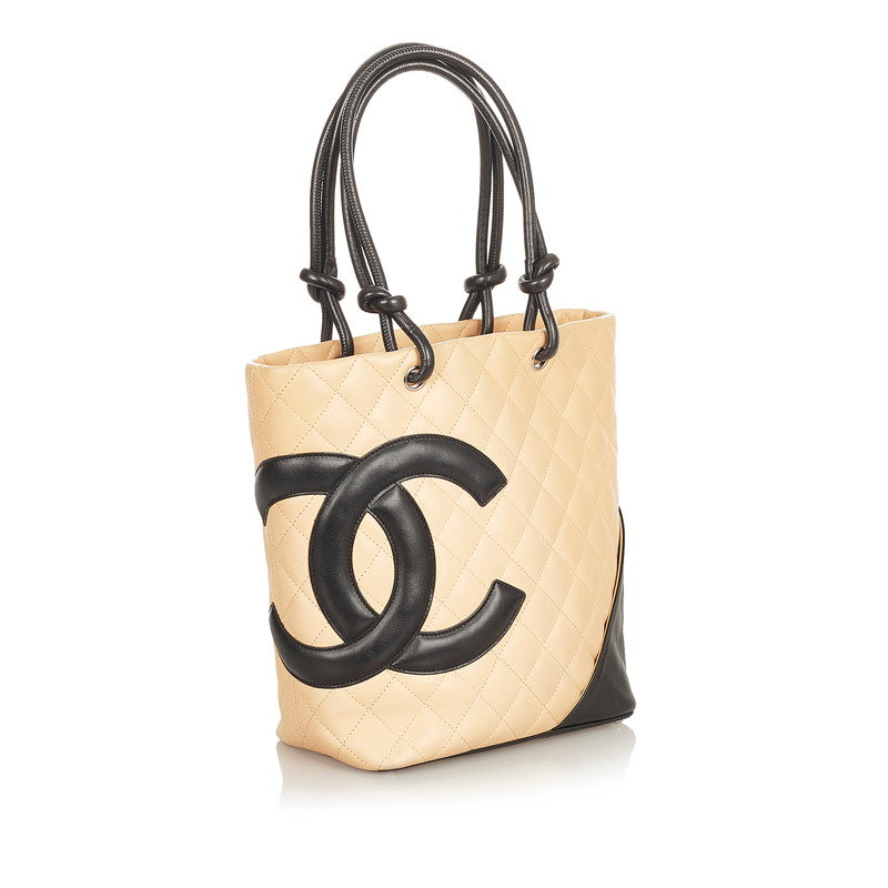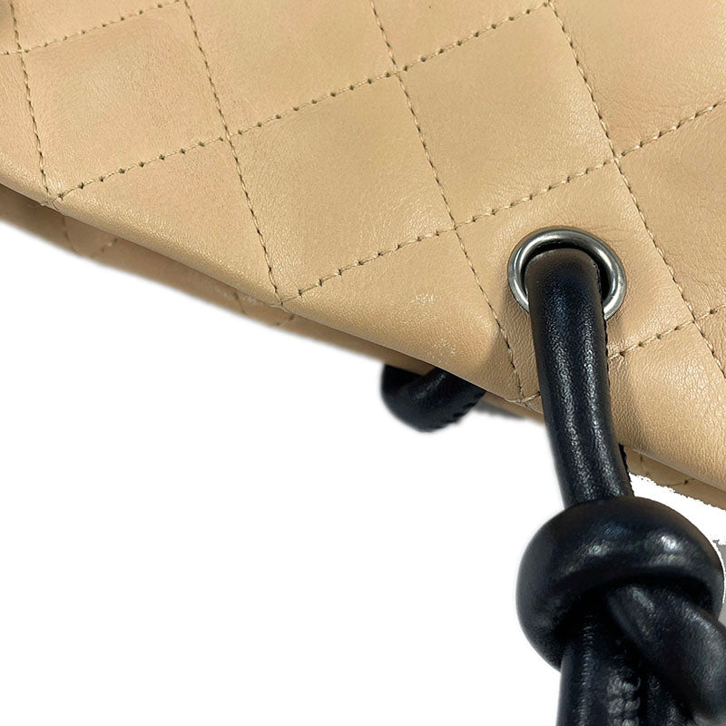 シャネル カンボン ココマーク ベージュ ブラック レザー ハンドバッグ レディース CHANEL 【中古】