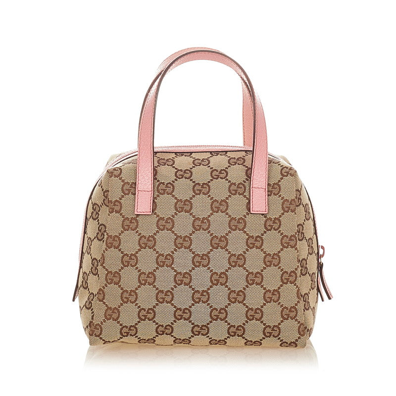 グッチ GGキャンバス 124542 ベージュ ブラウン ピンク キャンバス レザー ミニハンドバッグ レディース GUCCI 【中古】