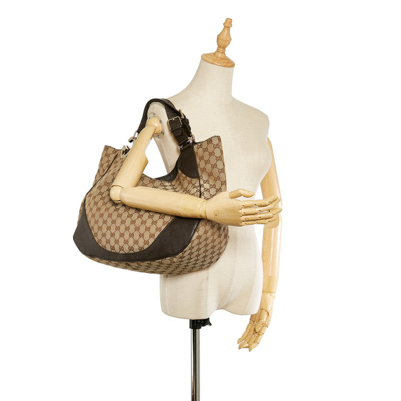 グッチ GGキャンバス 203504 ブラウン ベージュ キャンバス レザー ショルダーバッグ レディース GUCCI 【中古】