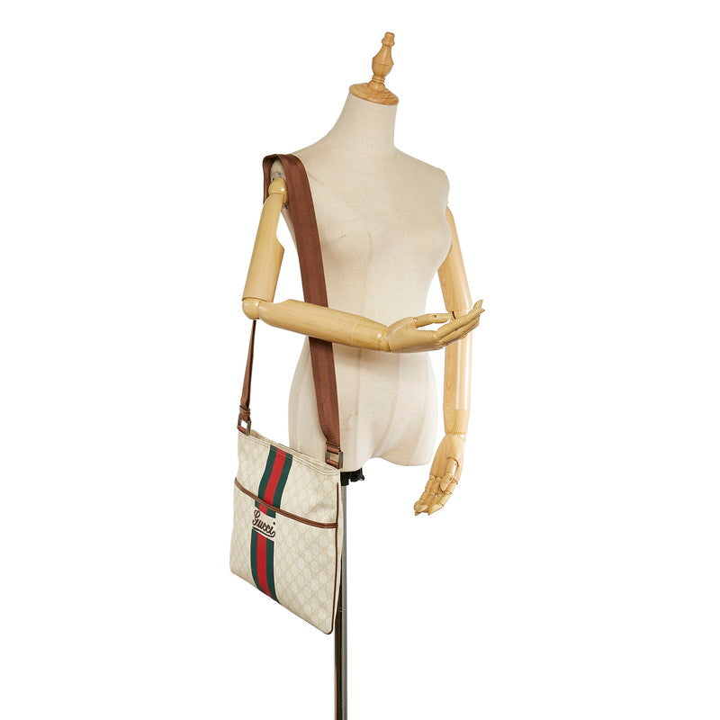グッチ GGスプリーム シェリーライン 189816 ホワイト PVC レザー 斜め掛け ショルダーバッグ メンズ GUCCI 【中古】