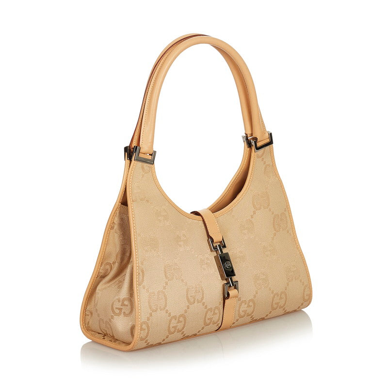 グッチ GGキャンバス ジャッキー 002 1067 ベージュ キャンバス レザー ショルダーバッグ レディース GUCCI 【中古】