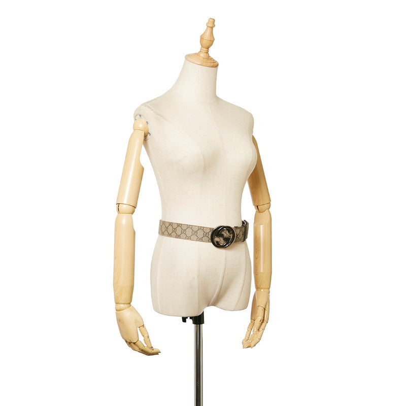 グッチ GGスプリーム インターロッキングG 114984 ベージュ PVC レザー ベルト メンズ GUCCI 【中古】