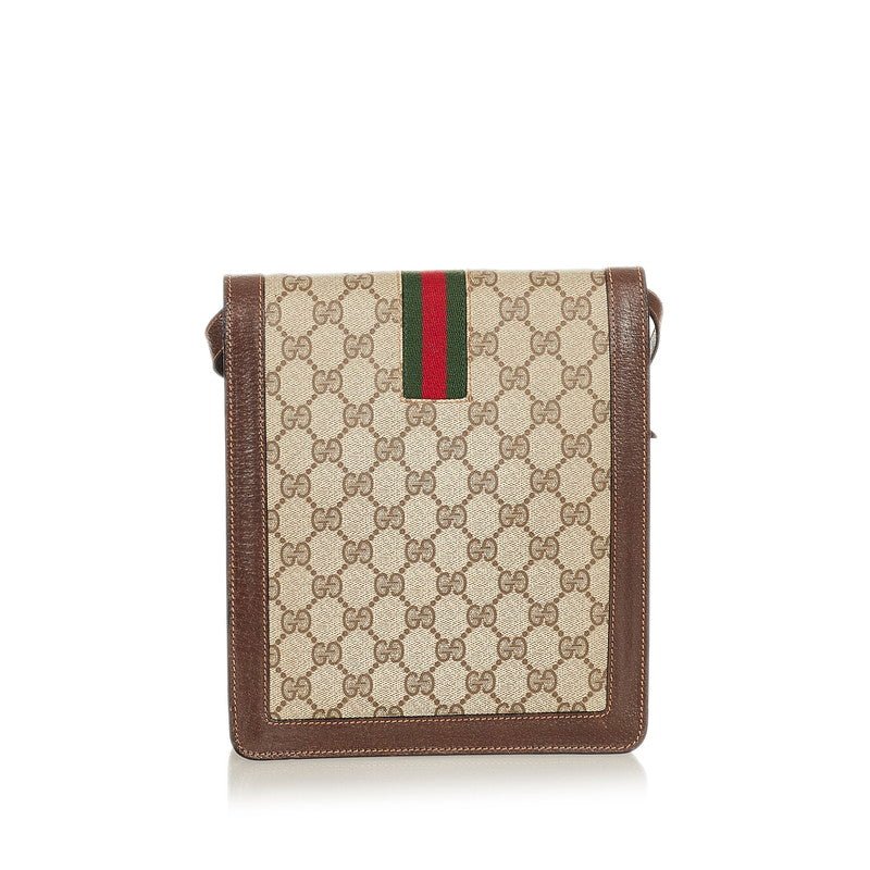 グッチ GGスプリーム シェリーライン ベージュ ブラウン PVC レザー 肩掛け ショルダーバッグ レディース GUCCI 【中古】