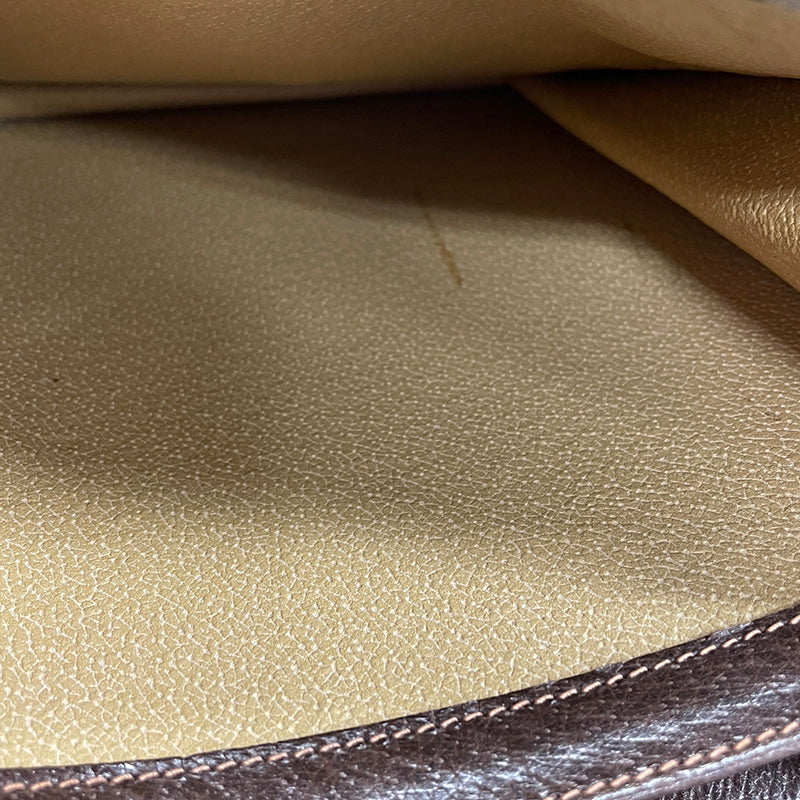 外側に若干のスレ・僅かなペン跡・フチスレ、底部に若干の角スレ、ショルダーに若干のヨレ・コバスレ、内側の所々に汚れ、フラップ裏にスレ・線キズはありますが、キレイな商品です。 |