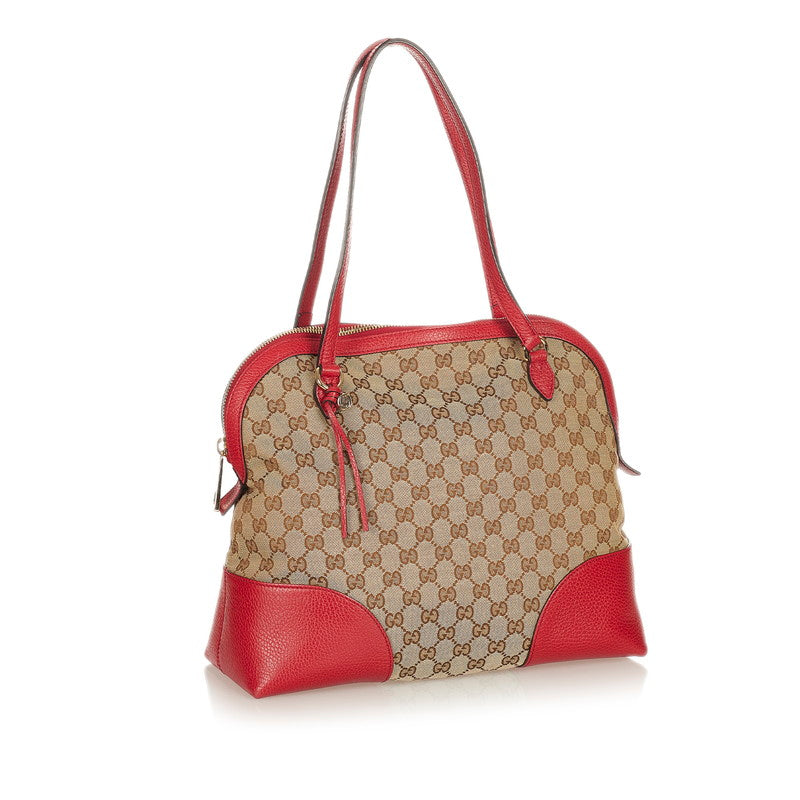 グッチ GGキャンバス 449243 ベージュ レッド キャンバス レザー ショルダーバッグ レディース GUCCI 【中古】