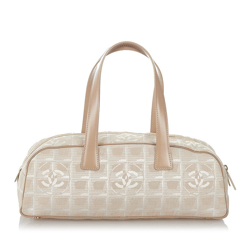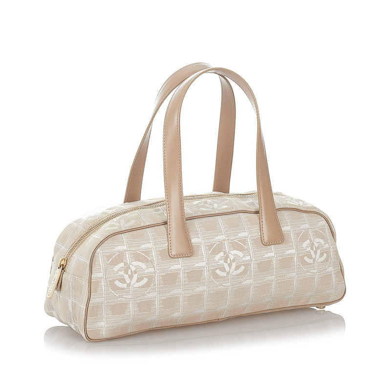 シャネル ニュートラベル ベージュ キャンバス レザー ハンドバッグ レディース CHANEL 【中古】