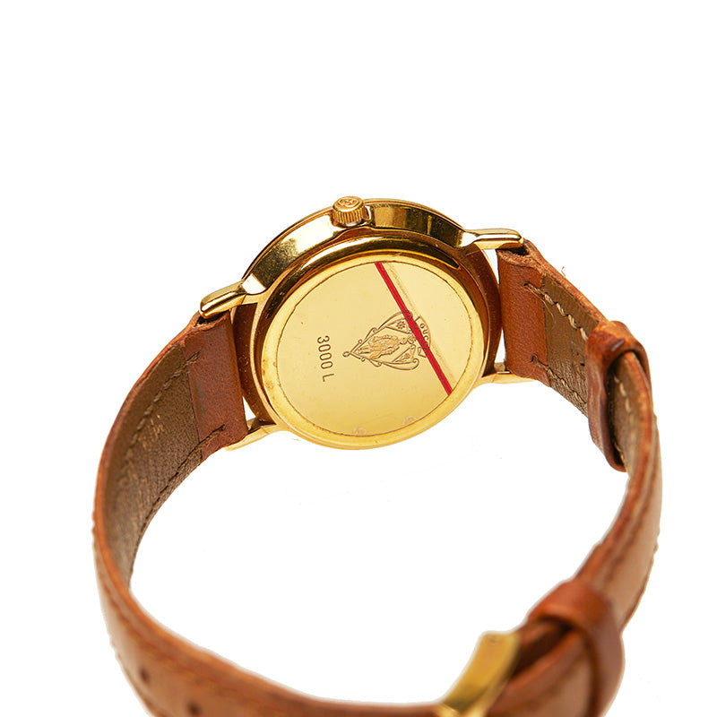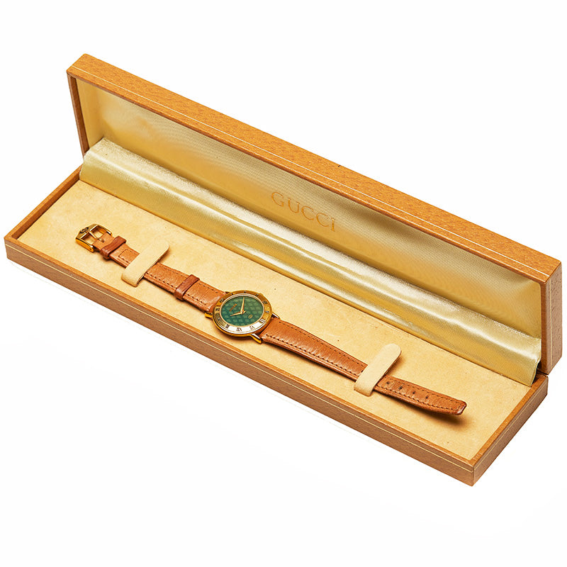 グッチ 3000L ブラウン メッキ 腕時計 レディース GUCCI クオーツ グリーン文字盤 【中古】