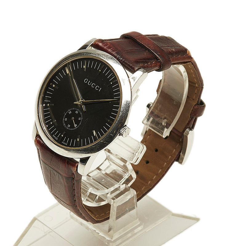 グッチ 5600M シルバー ステンレススチール 腕時計 メンズ GUCCI クオーツ ブラック文字盤 【中古】
