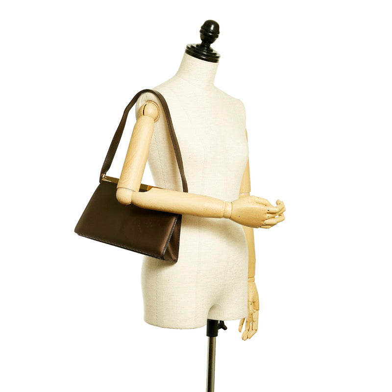 グッチ 001・2058 ブラウン レザー ショルダーバッグ レディース GUCCI 【中古】