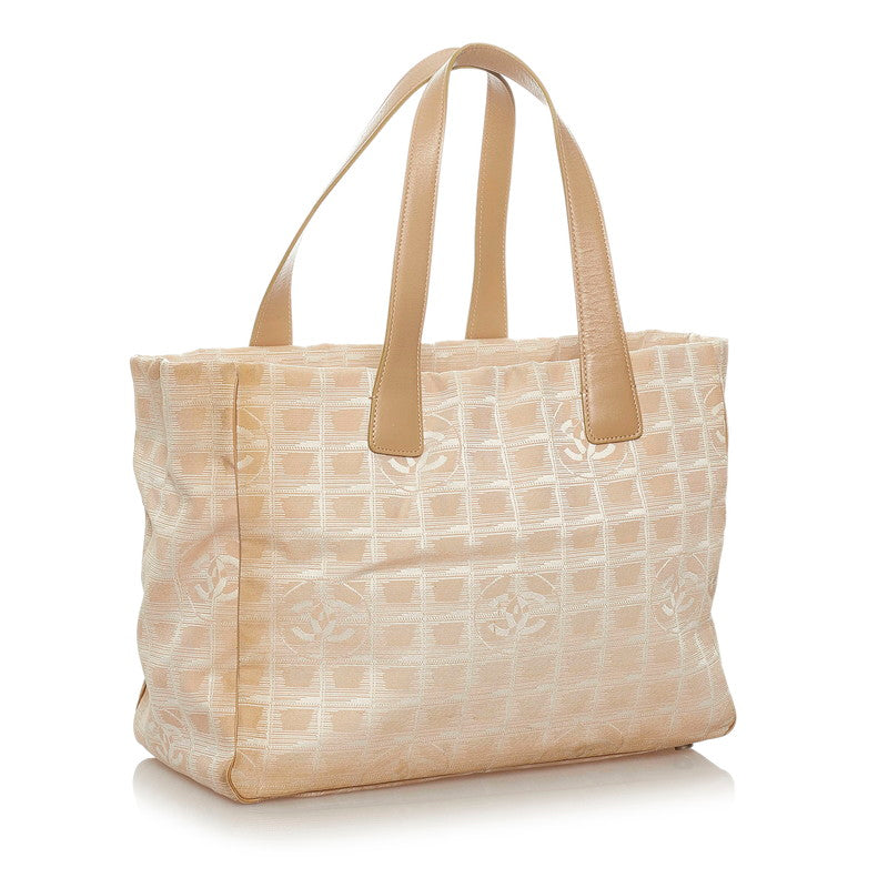 シャネル ニュートラベル ベージュ キャンバス レザー トートバッグ レディース CHANEL 【中古】