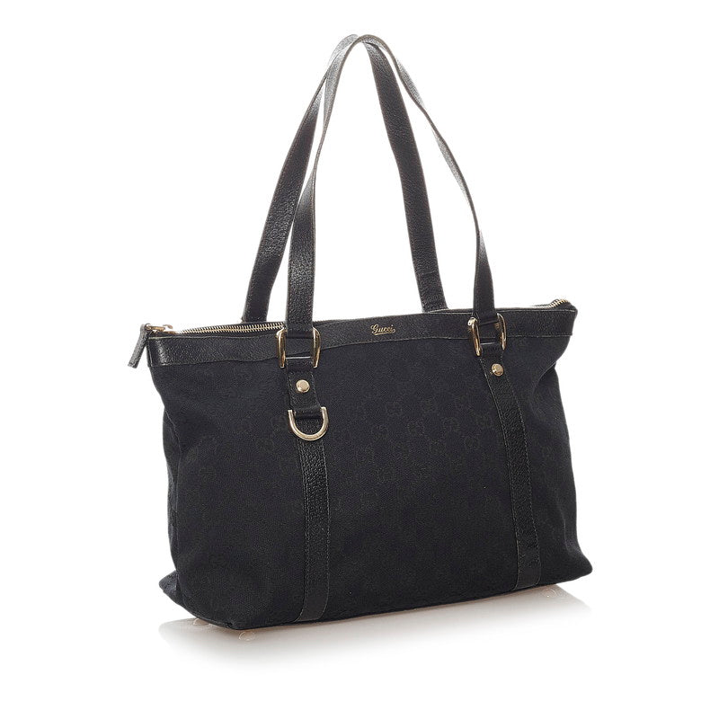 グッチ GGキャンバス トートバッグ 141470 ブラック キャンバス レザー レディース GUCCI 【中古】