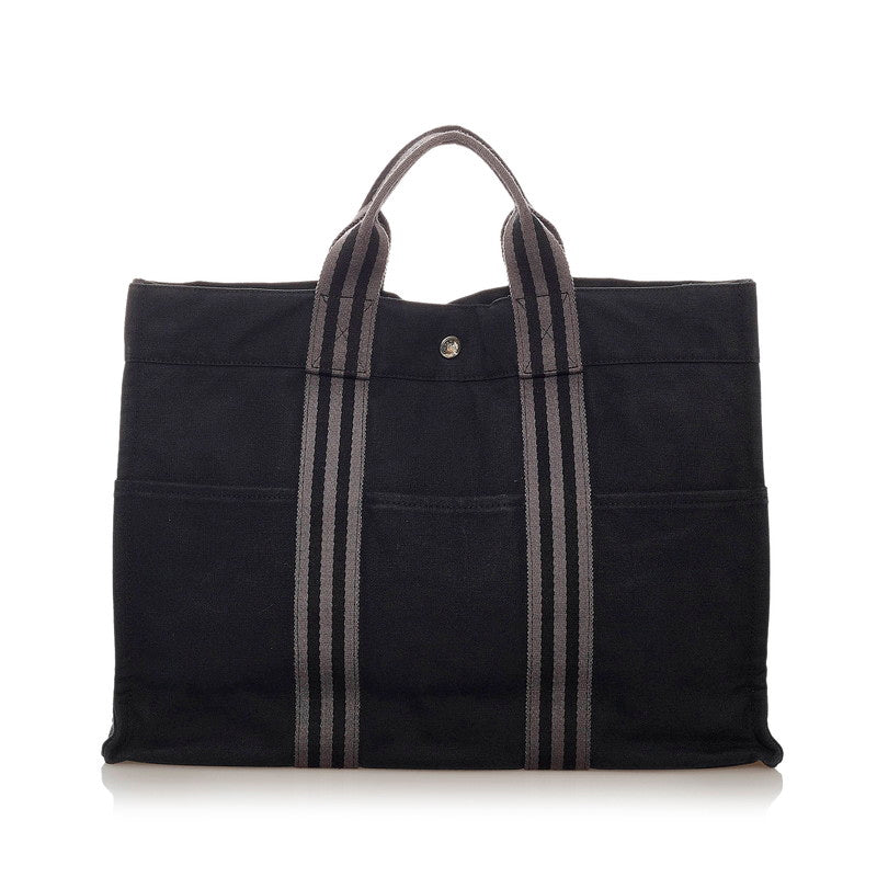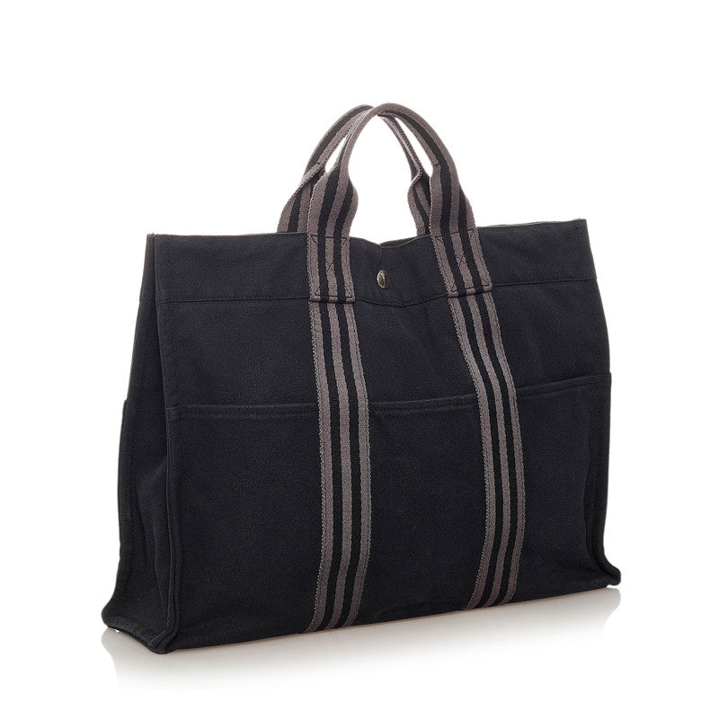 エルメス フールトゥMM ブラック コットン トートバッグ メンズ HERMES 【中古】