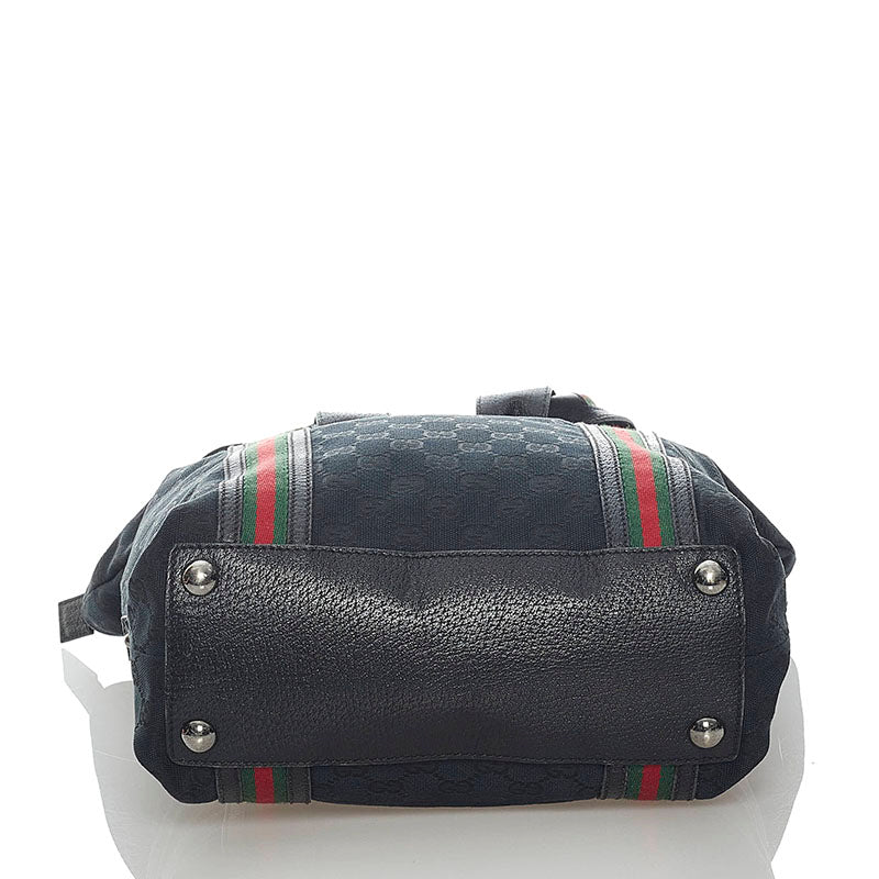 グッチ GGキャンバス シェリーライン ショルダーバッグ トートバッグ 131186 ブラック キャンバス レザー レディース GUCCI 【中古】