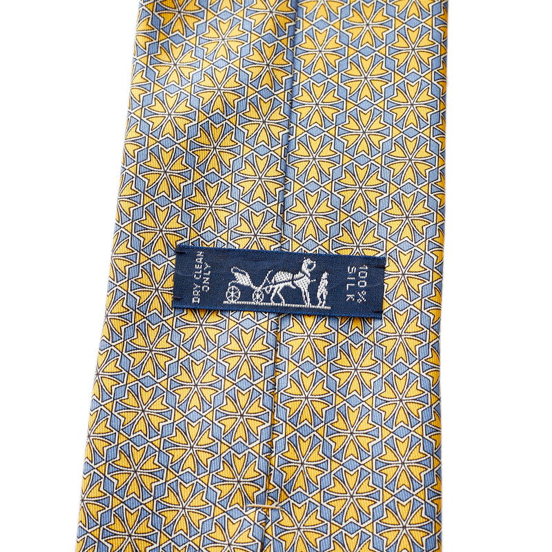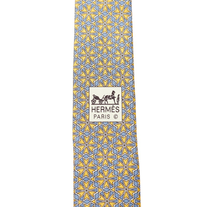 エルメス ネクタイ イエロー ブルー シルク メンズ HERMES 【中古】