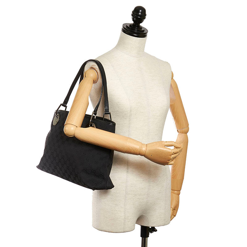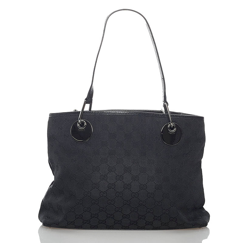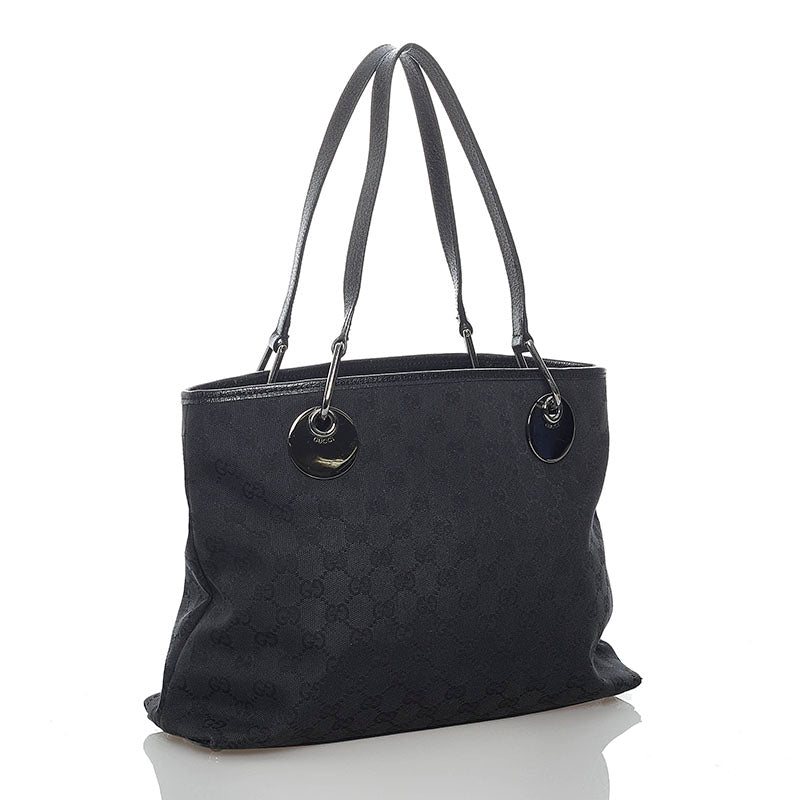 グッチ GGキャンバス 120837 ブラック キャンバス レザー トートバッグ レディース GUCCI 【中古】