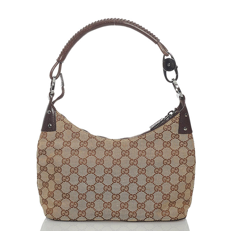 グッチ GGキャンバス 115002 ベージュ ブラウン キャンバス レザー ワンショルダー レディース GUCCI 【中古】