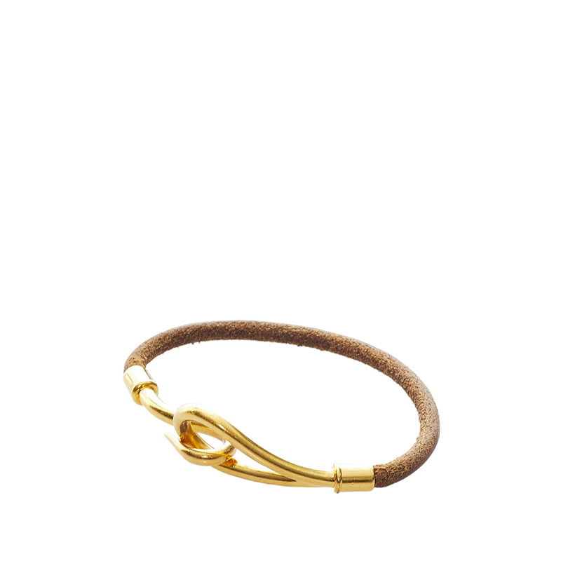 エルメス ブラウン ゴールド レザー メッキ ジャンボ ブレスレット レディース HERMES 【中古】
