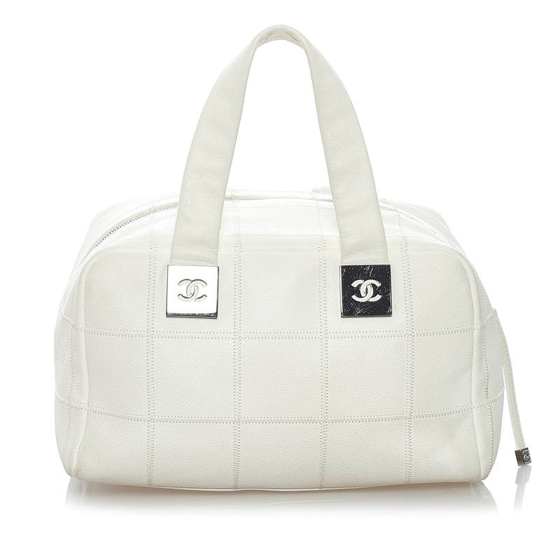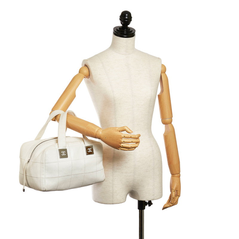 シャネル チョコバー ココマーク ホワイト キャビアスキン ハンドバッグ レディース CHANEL 【中古】
