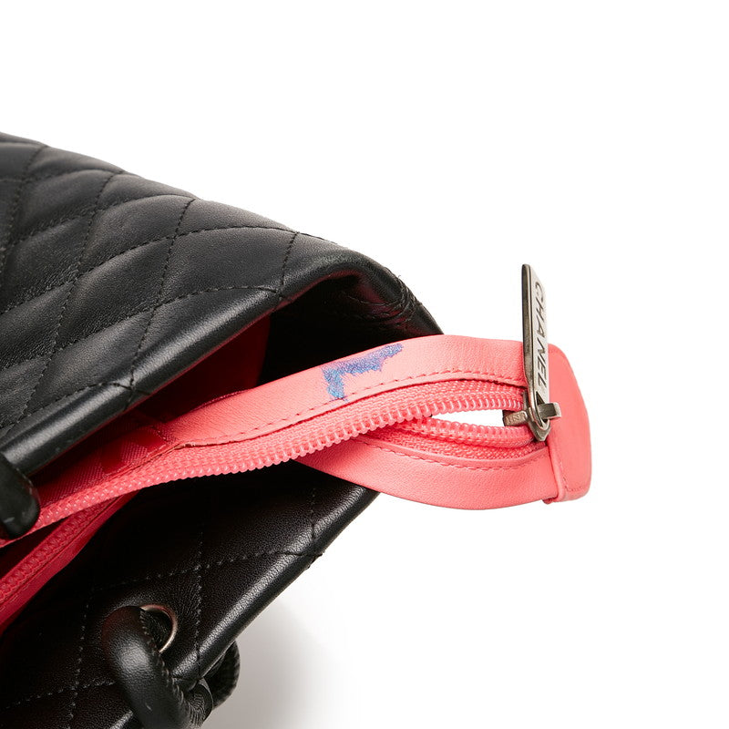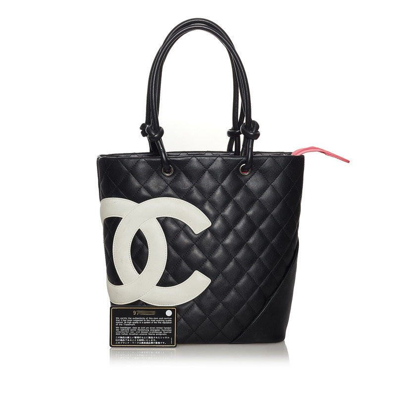 シャネル カンボンライン ココマーク ハンドバッグ ブラック ホワイト レザー レディース CHANEL 【中古】
