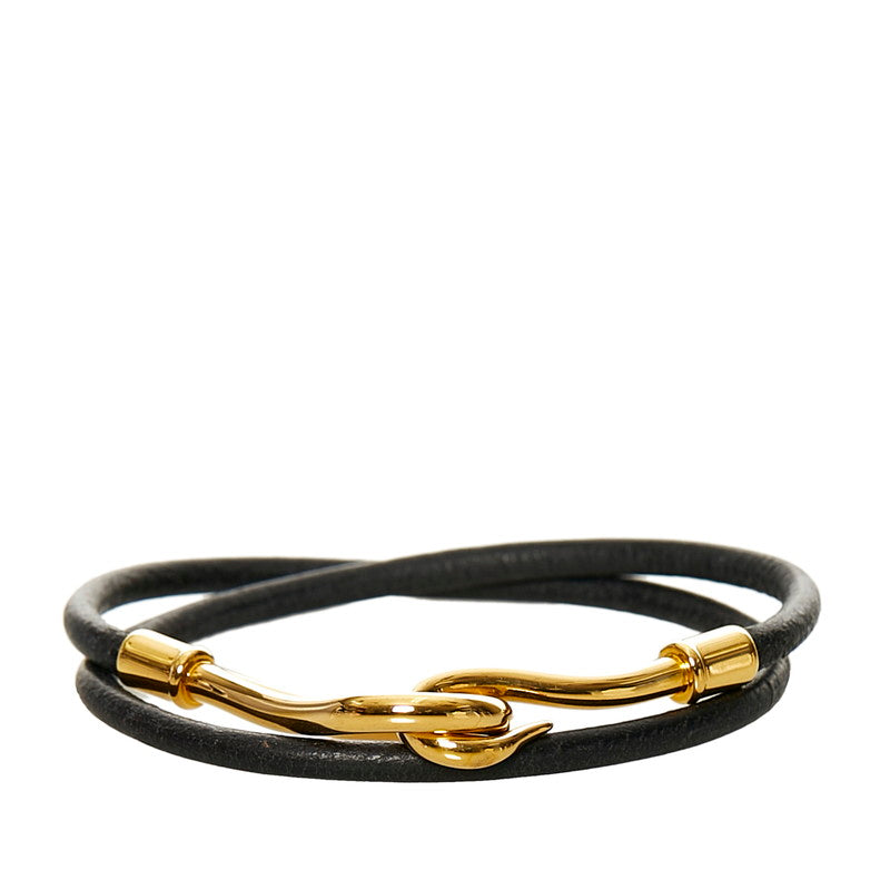 エルメス ブラック ゴールド レザー メッキ ジャンボ ブレスレット レディース HERMES 【中古】