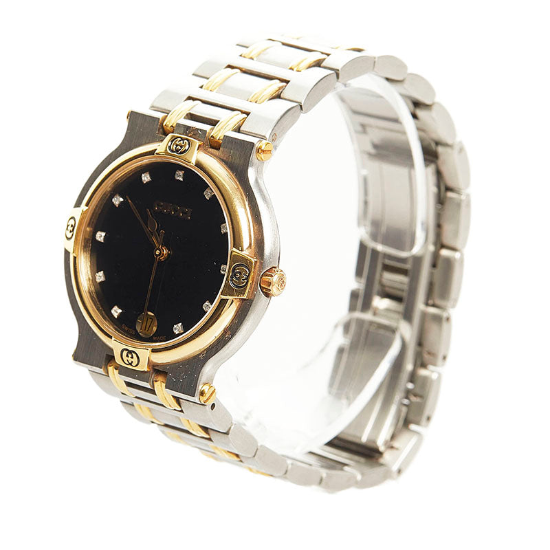 グッチ 11P 腕時計 9000M クオーツ ブラック文字盤 ステンレススチール レディース GUCCI 【中古】