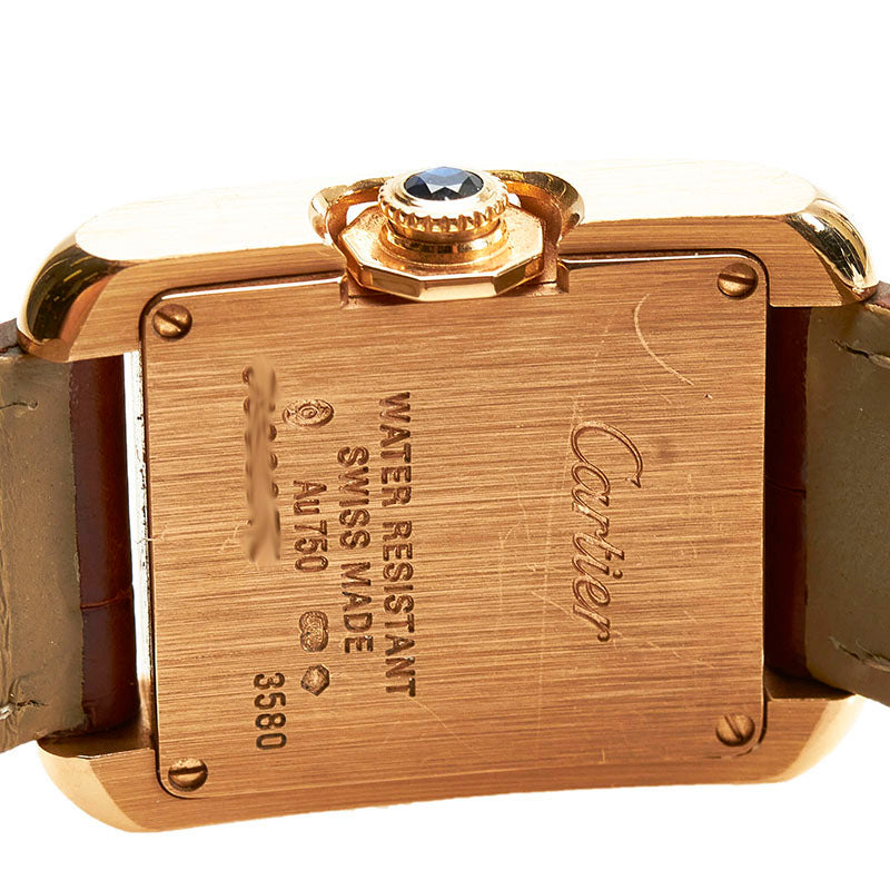カルティエ タンクアングレーズ SM 腕時計 W5310027 クオーツ シルバー文字盤 K18PG ピンクゴールド レディース CARTIER 【中古】