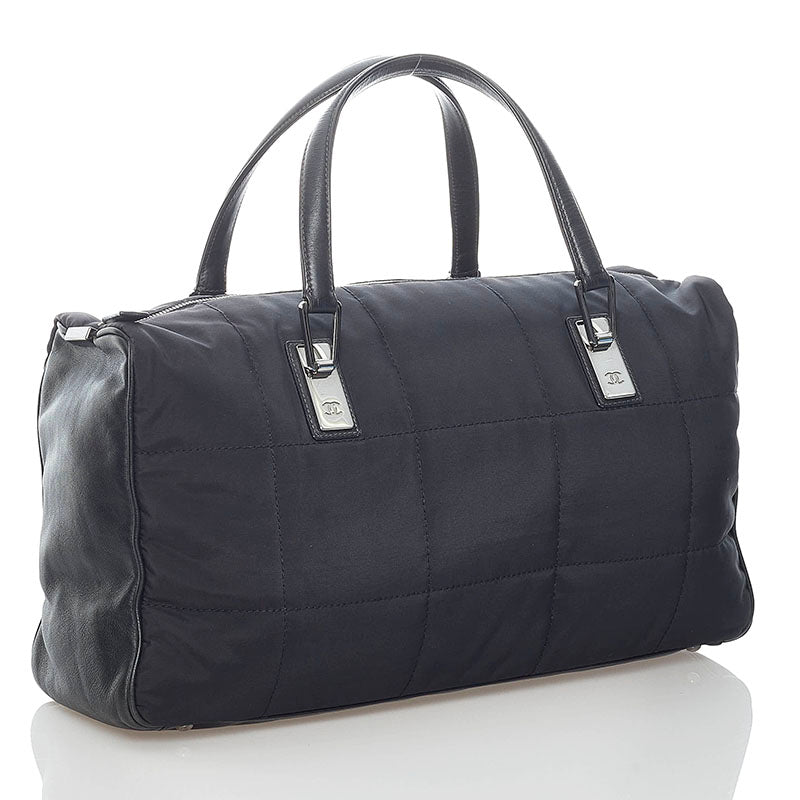 シャネル チョコバー ミニボストン ハンドバッグ ブラック ナイロン レザー レディース CHANEL 【中古】