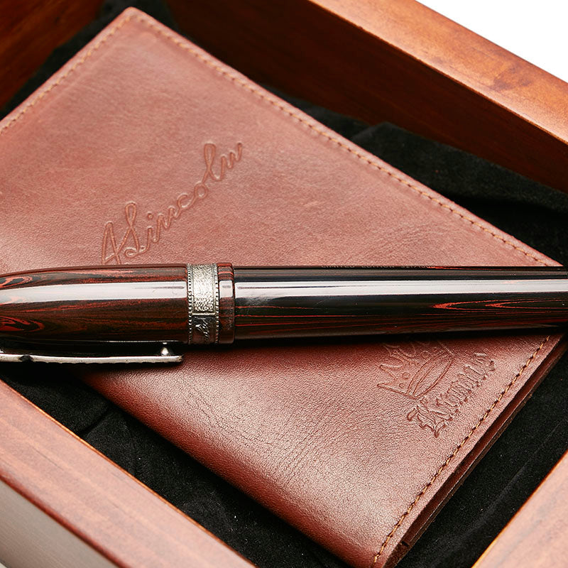 クローネ エイブラハム リンカーン 万年筆 ブラウン ブラック K18 ゴールド エボナイト メンズ 【中古】