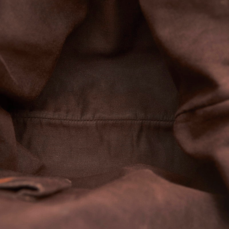 外側⇒シミ・色あせ、レザーとパイピングにスレ ショルダー⇒スレ・金具跡、コバスレ 金具⇒小キズ 開閉口⇒フチスレ 内側⇒数か所に目立つシミ |