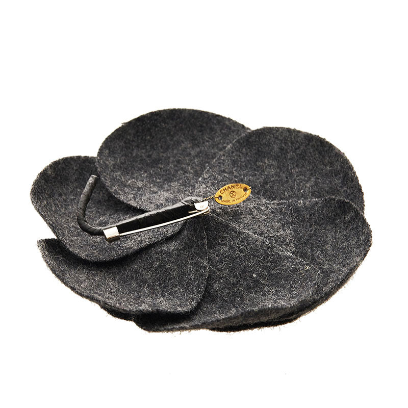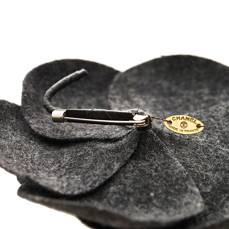 シャネル カメリア ブローチ グレー ウール レディース CHANEL 【中古】