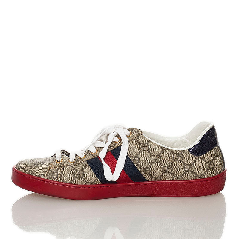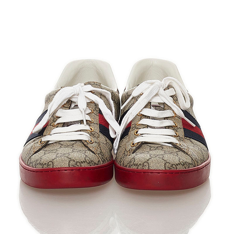 グッチ GGスプリーム シェリーライン スニーカー 429445 ベージュ PVC レザー メンズ GUCCI 【中古】
