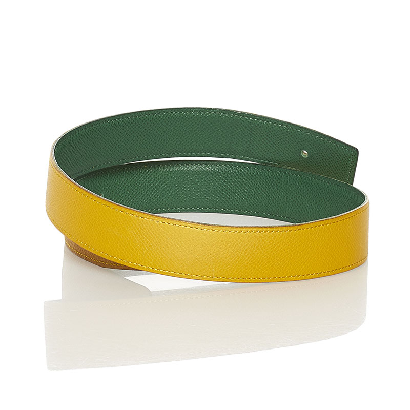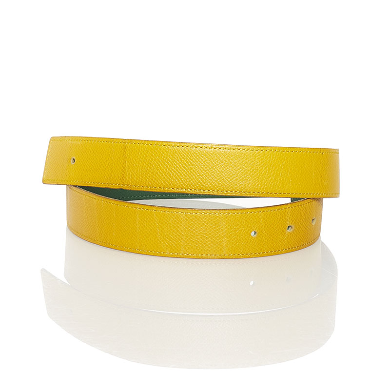 エルメス バックルなし リバーシブル 替え ベルト イエロー グリーン レザー レディース HERMES 【中古】