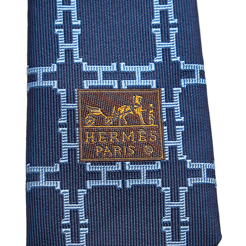 エルメス ネクタイ ネイビー ブルー シルク レディース HERMES 【中古】