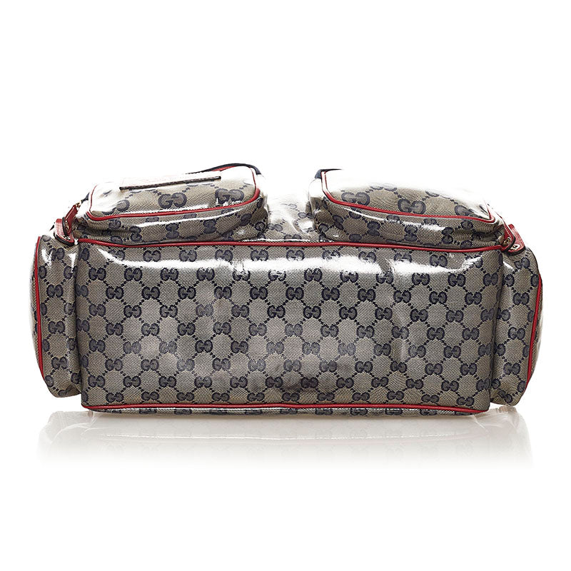 グッチ GGクリスタル ヒステリア ハンドバッグ ネイビー レッド PVC レザー レディース GUCCI 【中古】