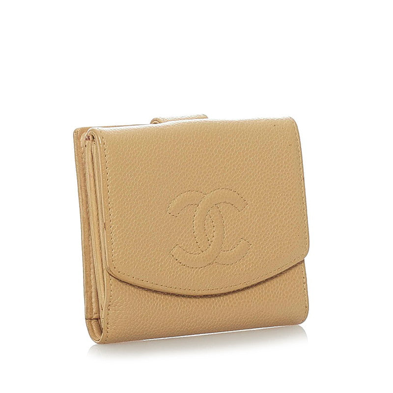 シャネル ココマーク 二つ折り財布 A13496 ベージュ キャビアスキン レディース CHANEL 【中古】