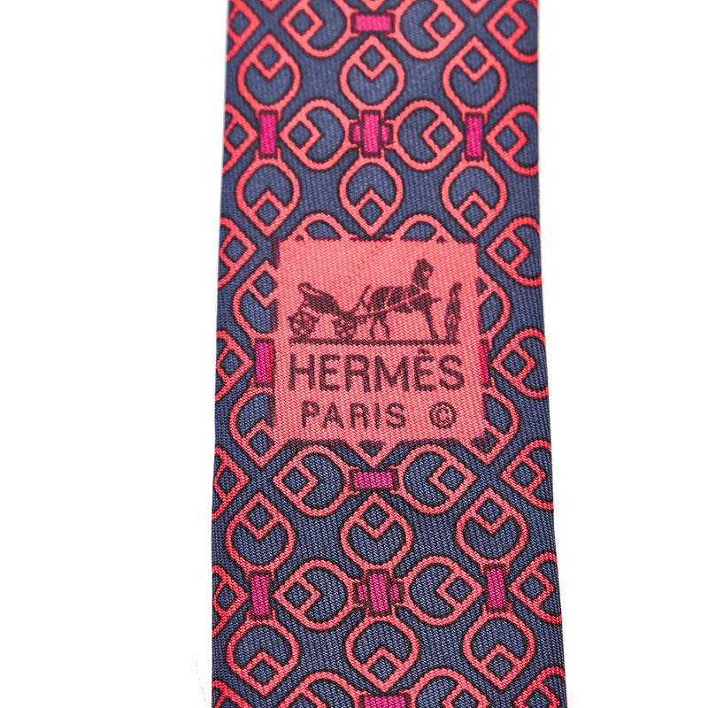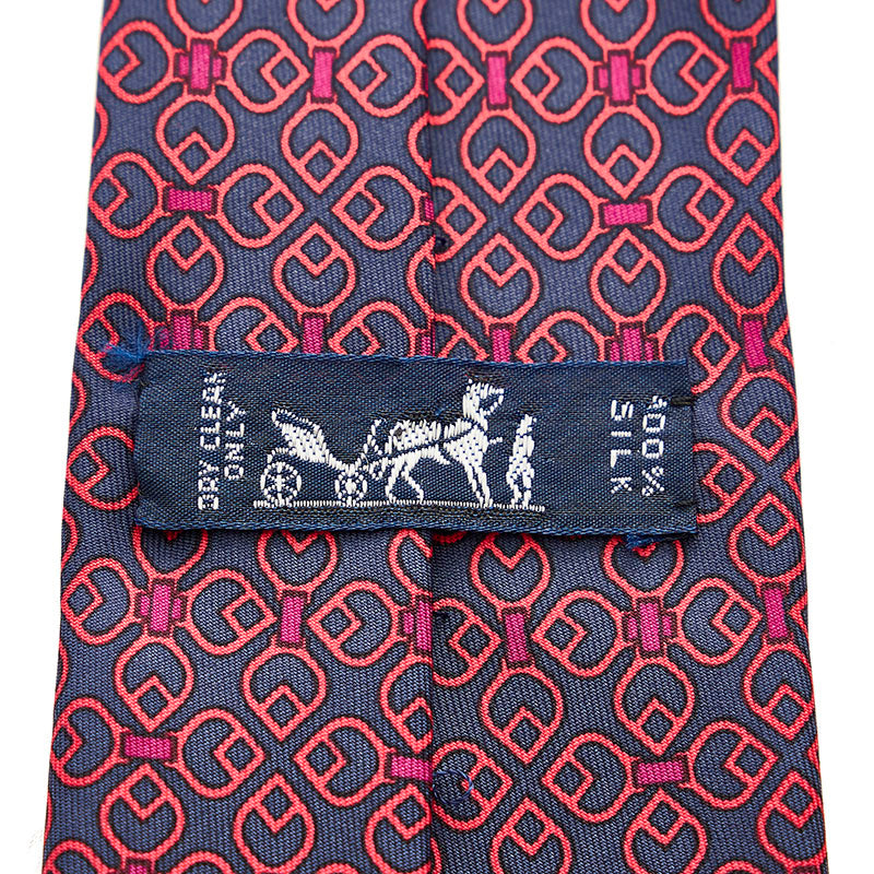 エルメス ネクタイ ネイビー レッド パープル シルク メンズ HERMES 【中古】