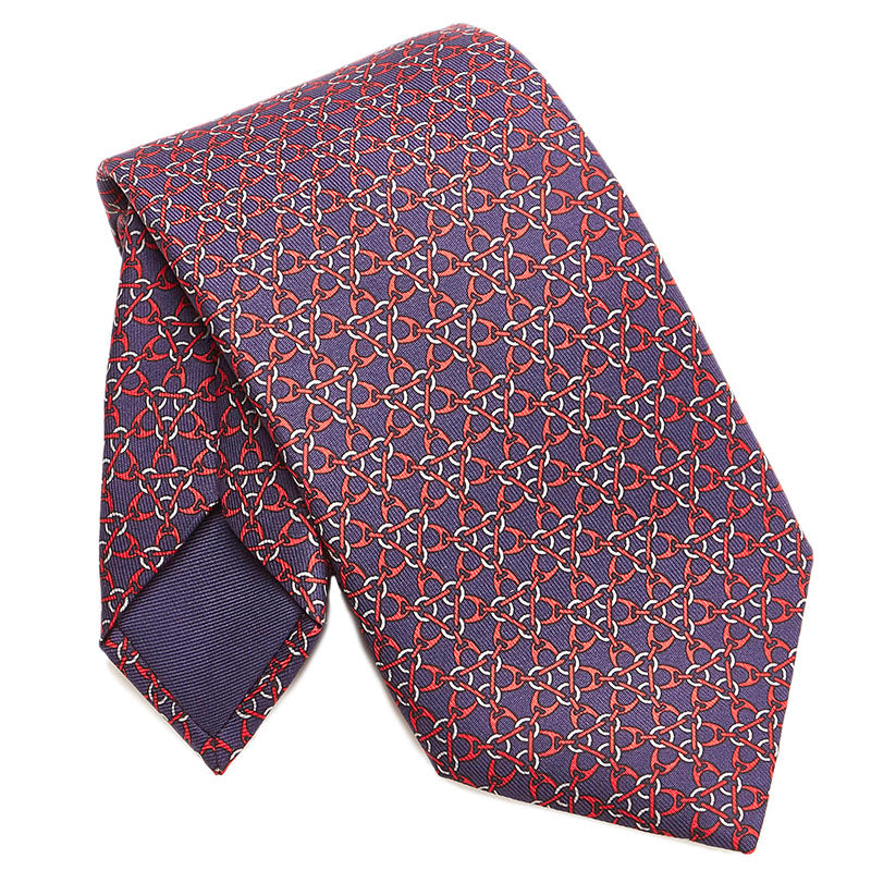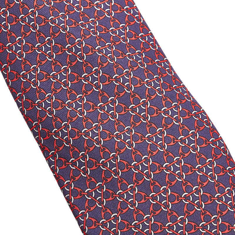 エルメス 総柄 ネクタイ レッド シルク メンズ HERMES 【中古】